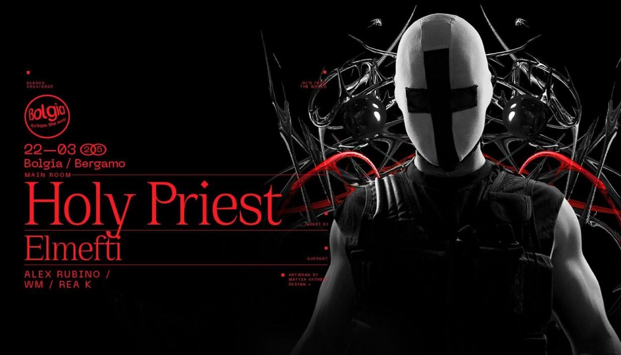 L’appuntamento di sabato 22 marzo 2025 al Bolgia di Bergamo con Holy Priest ed Elmefti arriva dopo le performance di decine di artisti di livello assoluto. Hanno fatto scatenare il top club bergamasco top dj come I Hate Models, 999999999, Deborah De Luca, Joseph Capriati, Ilario Alicante, Franchino, Ellen Allien e Métaraph, Marco Faraone, Indira Paganotto, Len Faki, Lilly Palmer, Patrick Mason, Ilario Alicante, Nico Moreno, Basswell, CLTX & Skryption, Fantasm, Azyr, Franky Rizardo, Klangkuenstler ed altri protagonisti della scena elettronica mondiale.