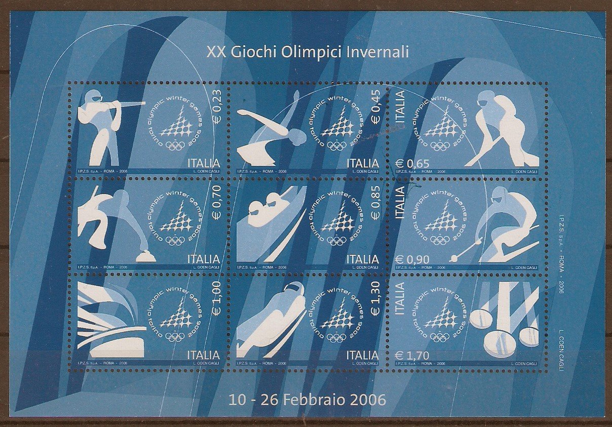 Dopo che i destini dei cinque cerchi estivi e invernali si sono scissi, è stata la volta di Torino 2006 a riportare migliaia di atleti nel Bel Paese a contendersi medaglie, onori e gloria. Il Bel Paese però non ha celebrato l’evento con una bella serie. Nove valori caratterizzati da una pesante dominante azzurra, che forse nelle intenzioni degli autori voleva richiamare il colore della nazionale italiana (a proposito, chi ricorda che l’azzurro a suo tempo era stato scelto in quanto colore di casa Savoia?), ma che ha finito per mescolare figure di atleti in parte indistinte che sembrano filtrate nella penombra della sera. A questi si è aggiunto un foglietto ricordo che ha raccolto insieme i nove francobolli, per la gioia dei collezionisti che sono stati chiamati a pagare due volte lo stesso oggetto.