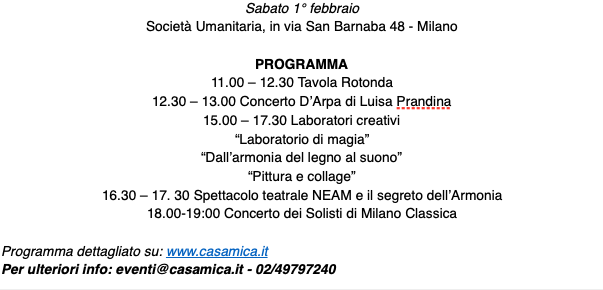 L’evento è aperto a tutti, per info e prenotazioni: www.casamica.it